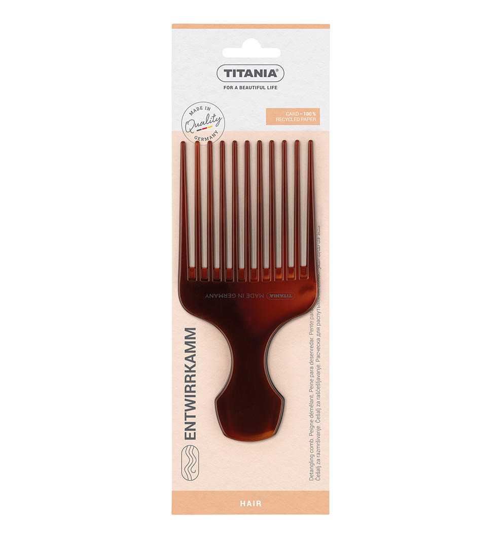 Η TITANIA Χτένα Μαλλιών Πιρούνα 1805/8 15cm είναι ένα πρακτικό και ανθεκτικό εργαλείο, ιδανικό για απαλό ξεμπέρδεμα και όγκο στα μαλλιά.